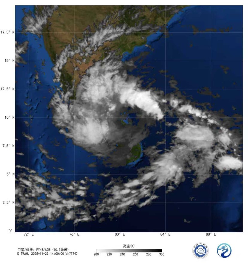 图1 卫星红外监测图像(北京时间2025年11月29日14时00分)