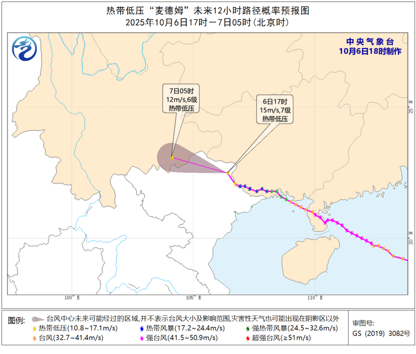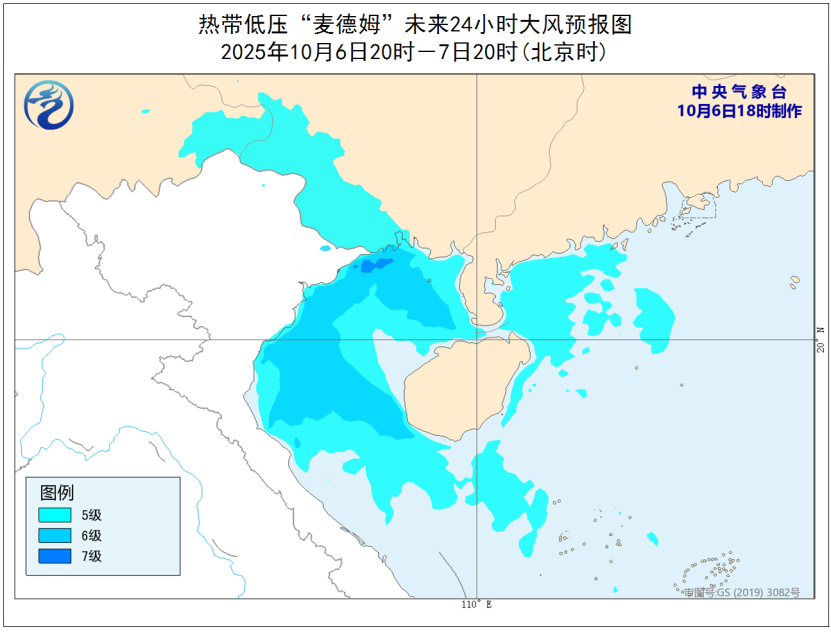 大风预报:6日20时至7日20时,北部湾、广西西部和南部、云南东部、雷州半岛、广东西部沿海将有5-6级、部分海域和地区7级的大风。