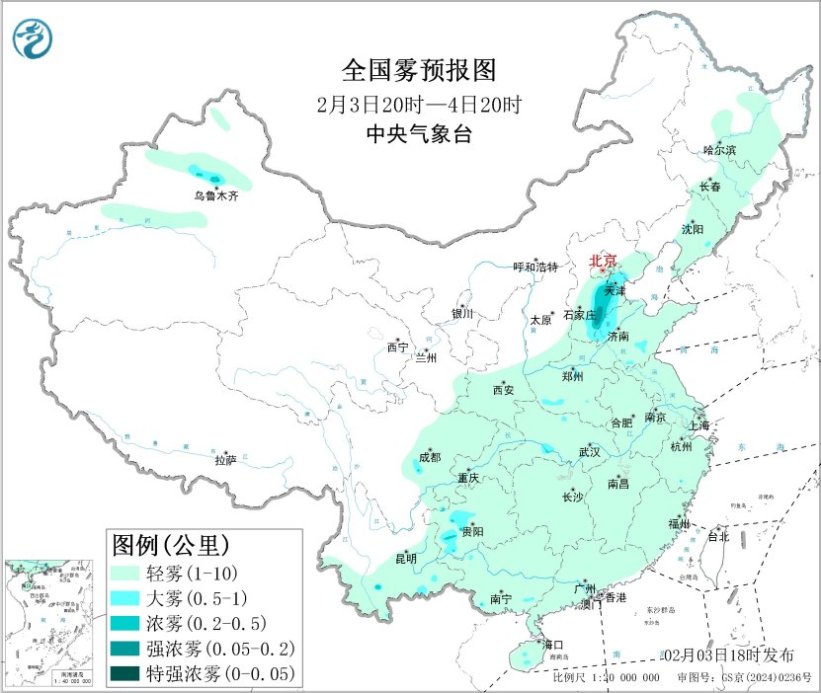 图1 全国雾预报图(2月3日20时-4日20时)