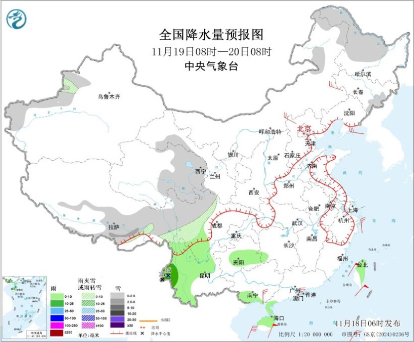 预计未来三天,全国大部地区降水较弱,青藏高原东部有小到中雪或雨夹雪,部分地区中雪;云南西部和北部有小雨,局地中雨。
