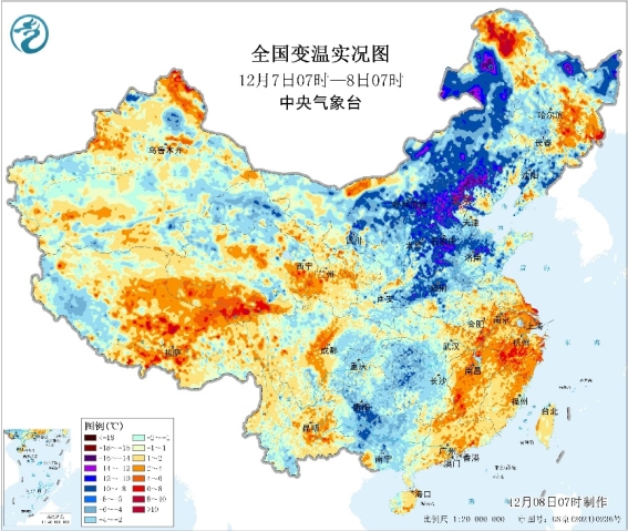 监测显示,今天7时较昨天7时,黑龙江中西部、吉林、辽宁等部分地区气温下降6~10℃,局地降12~16℃。预计今明两天,冷空气继续影响北方大部分地区,黄淮以北地区将有4~6℃降温,局地降温8℃及以上,上述地区并伴有4~6级偏北风,局地阵风可达7~9级。