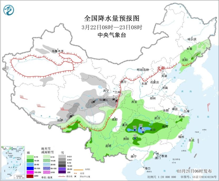 预计今明两天,贵州东部及江南、华南北部、江汉南部等地有小到中雨,局地大雨。其中今天降雨较强,湖南南部、江西中南部、浙江西南部、福建西部、广东北部有中雨,局地大雨;明天降雨范围缩小,强度减弱,贵州东部、湖南中部有中雨,局地大雨或暴雨。西藏西部和南部有大到暴雪,局部大暴雪,累积降雪量8~15毫米,局地可达30毫米以上。