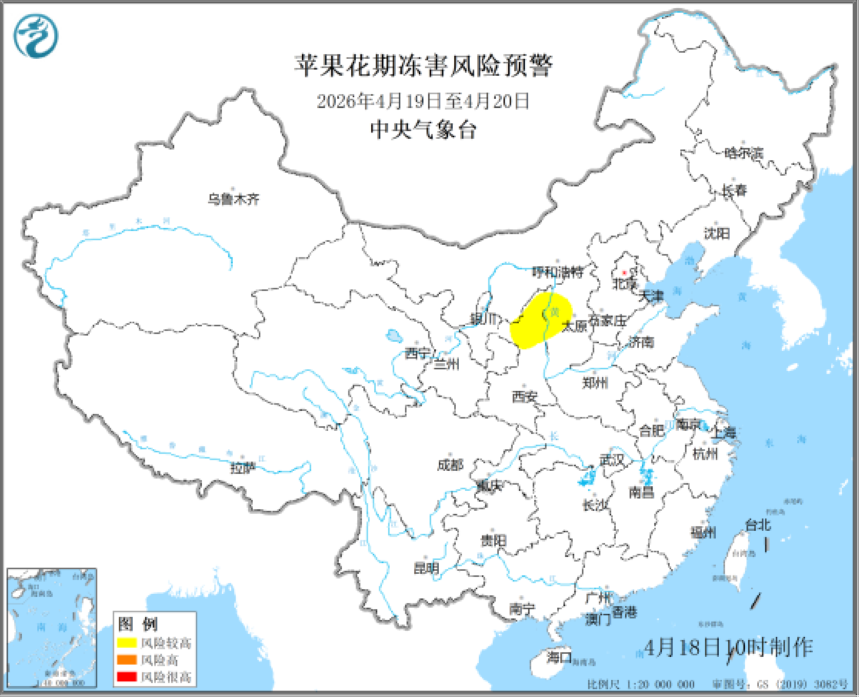 农业农村部和中国气象局2026年4月18日联合发布苹果花期冻害和冬小麦倒伏风险预警:预计19日至20