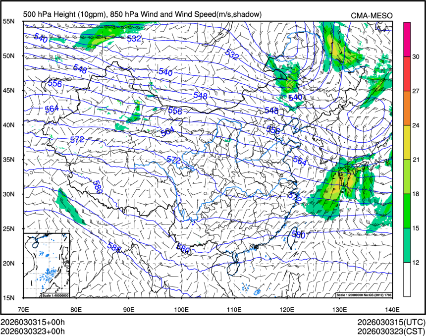 500hPa高度+850风场+850大风速(大于等于12)
