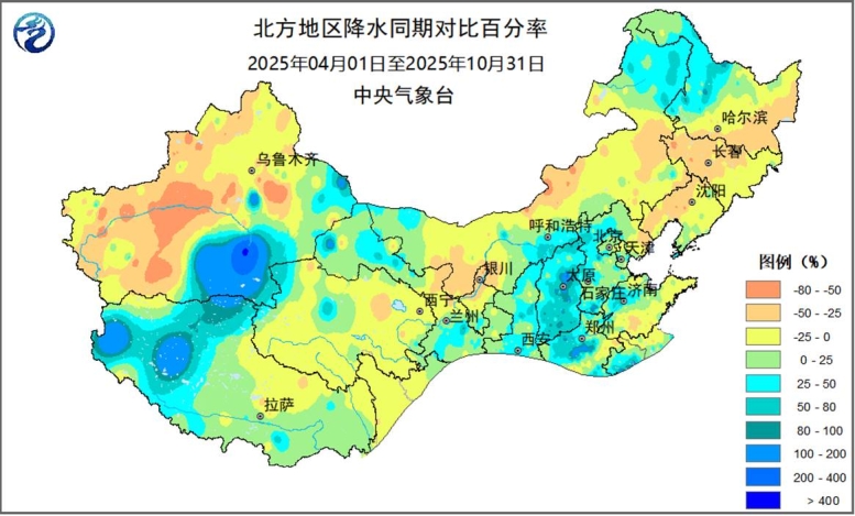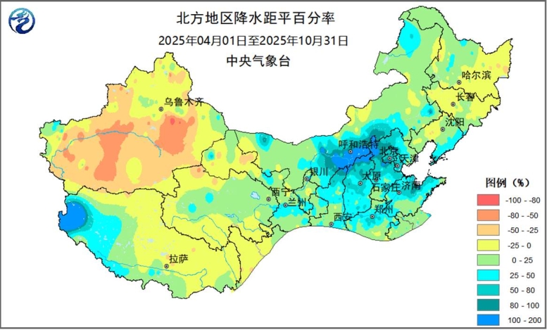 2025年4-10月北方荒漠化区大部降水正常偏多 利于植被生长
